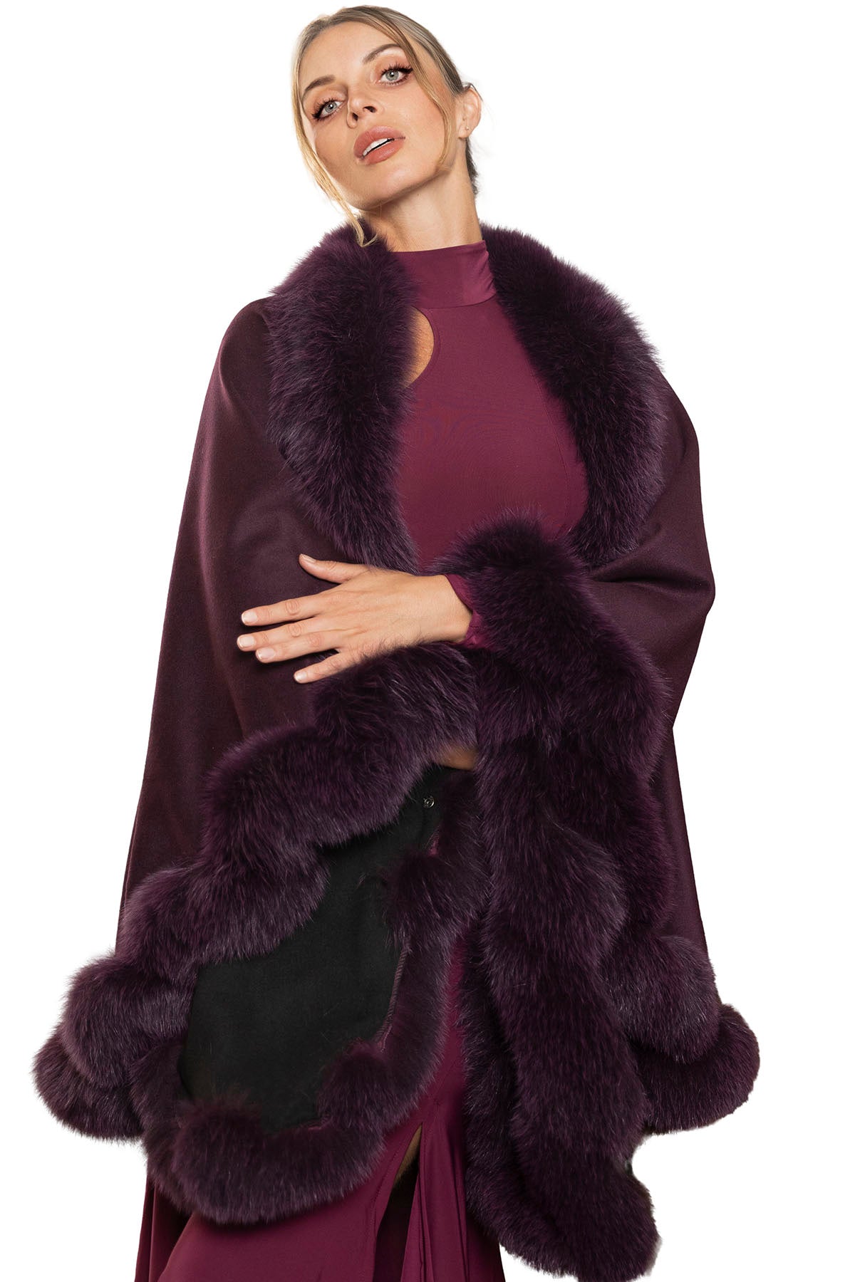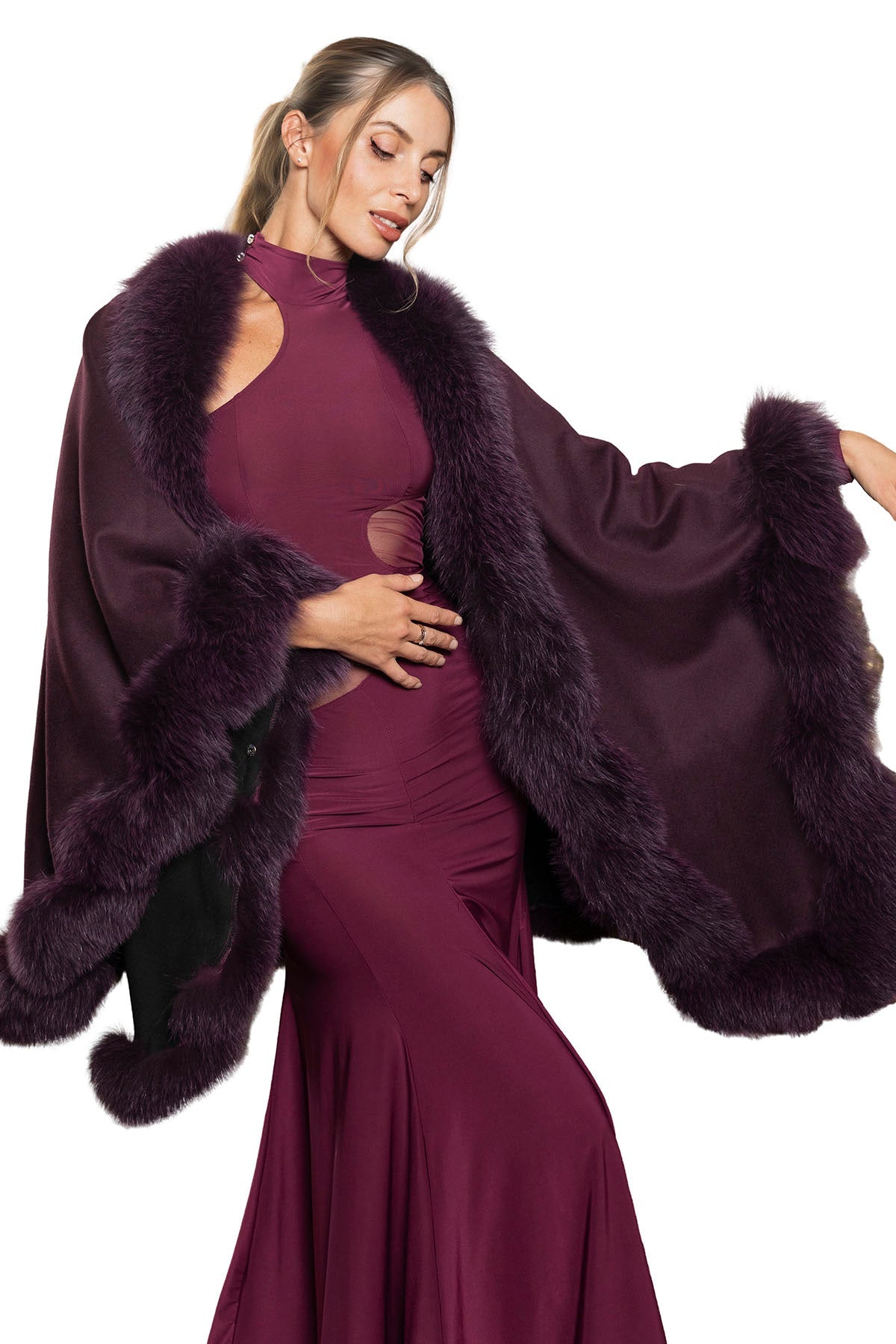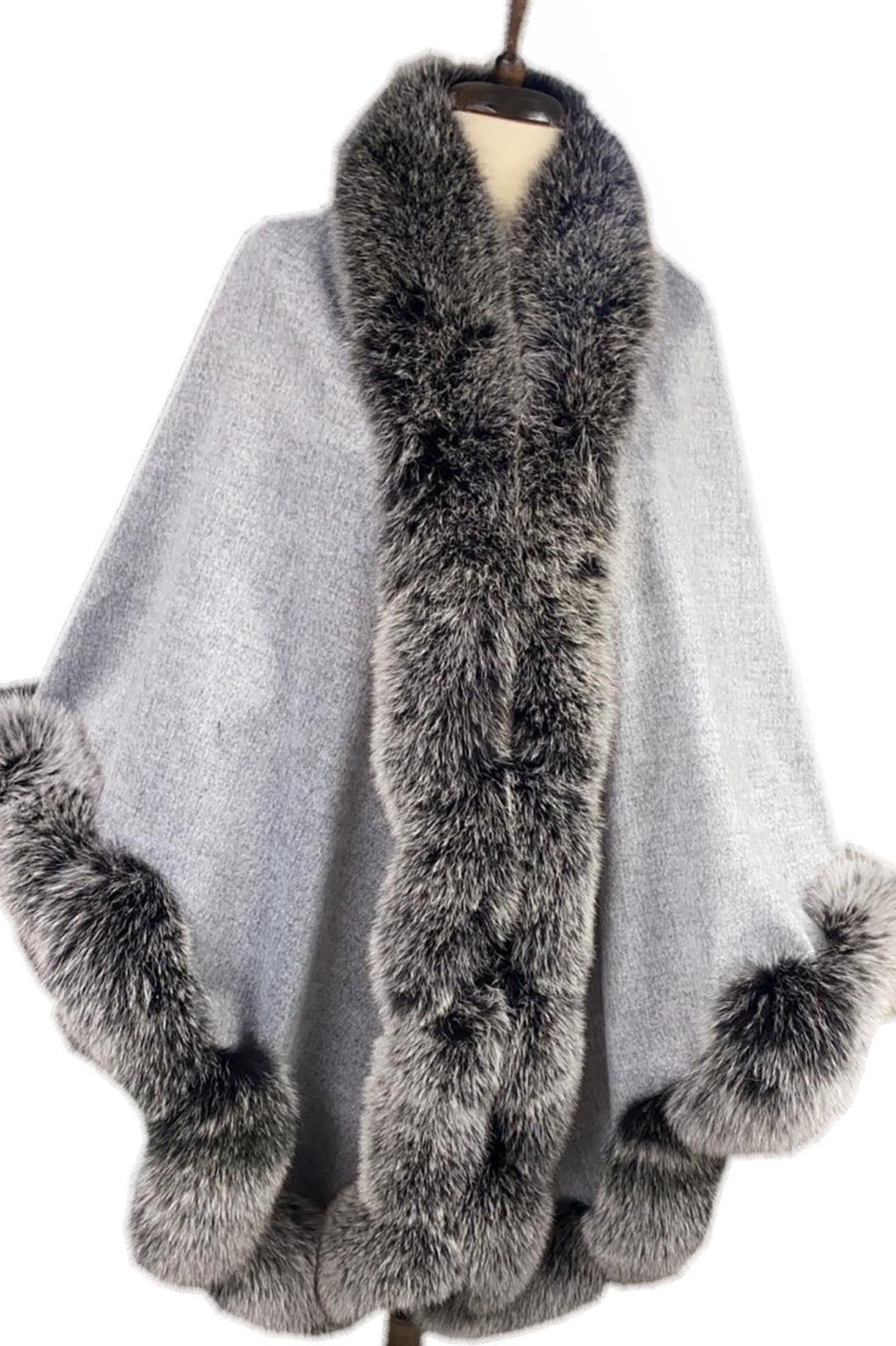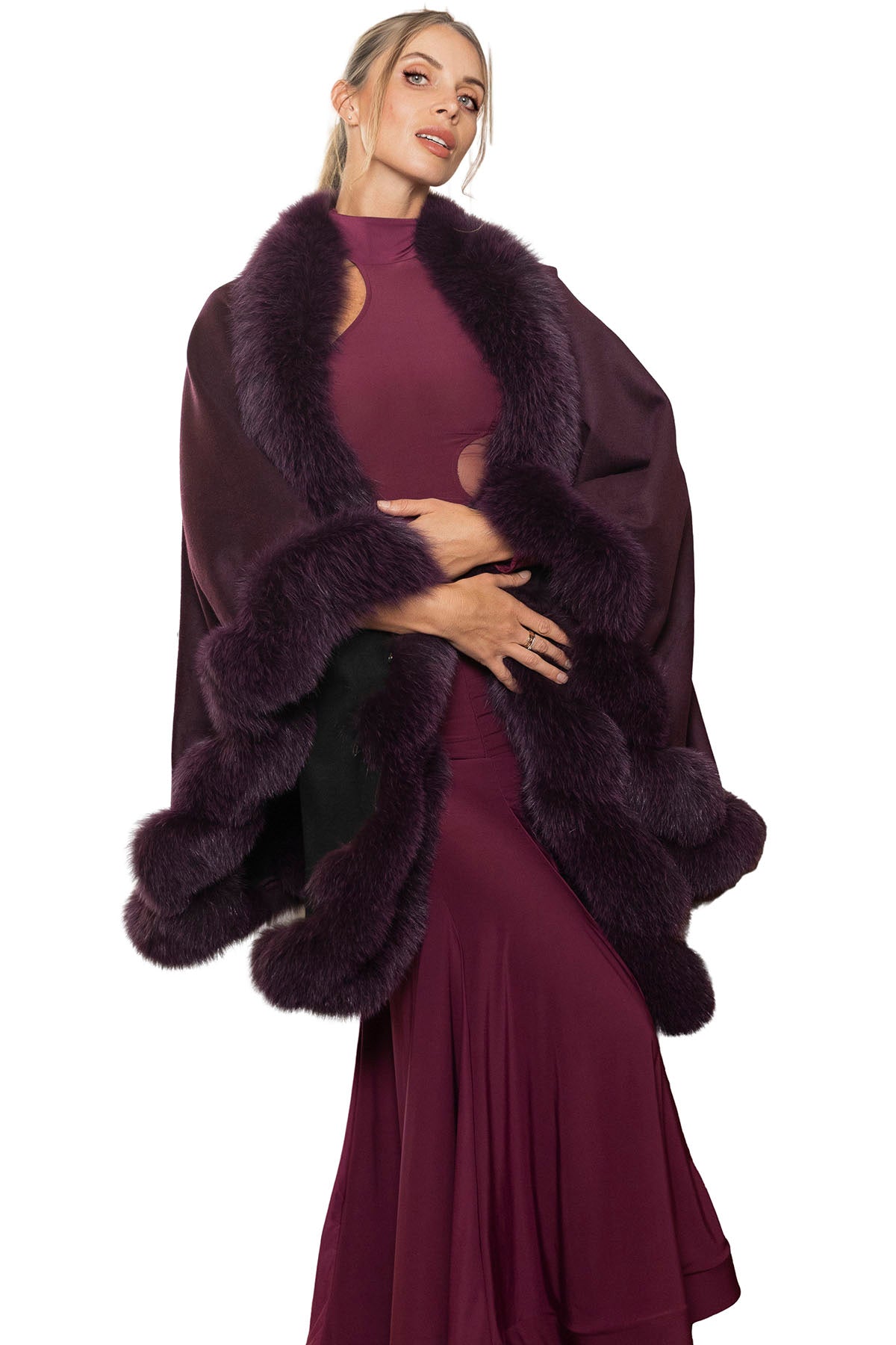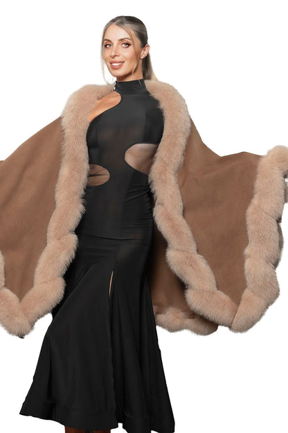 Indulge in luxury and warmth with our exquisite Alpaca Cape, featuring a stunning Fox Fur Trim. Keep cozy and stylish in any chilly ballroom. One size fits all, made with real fur. Elevate your wardrobe with this irresistible piece!