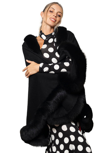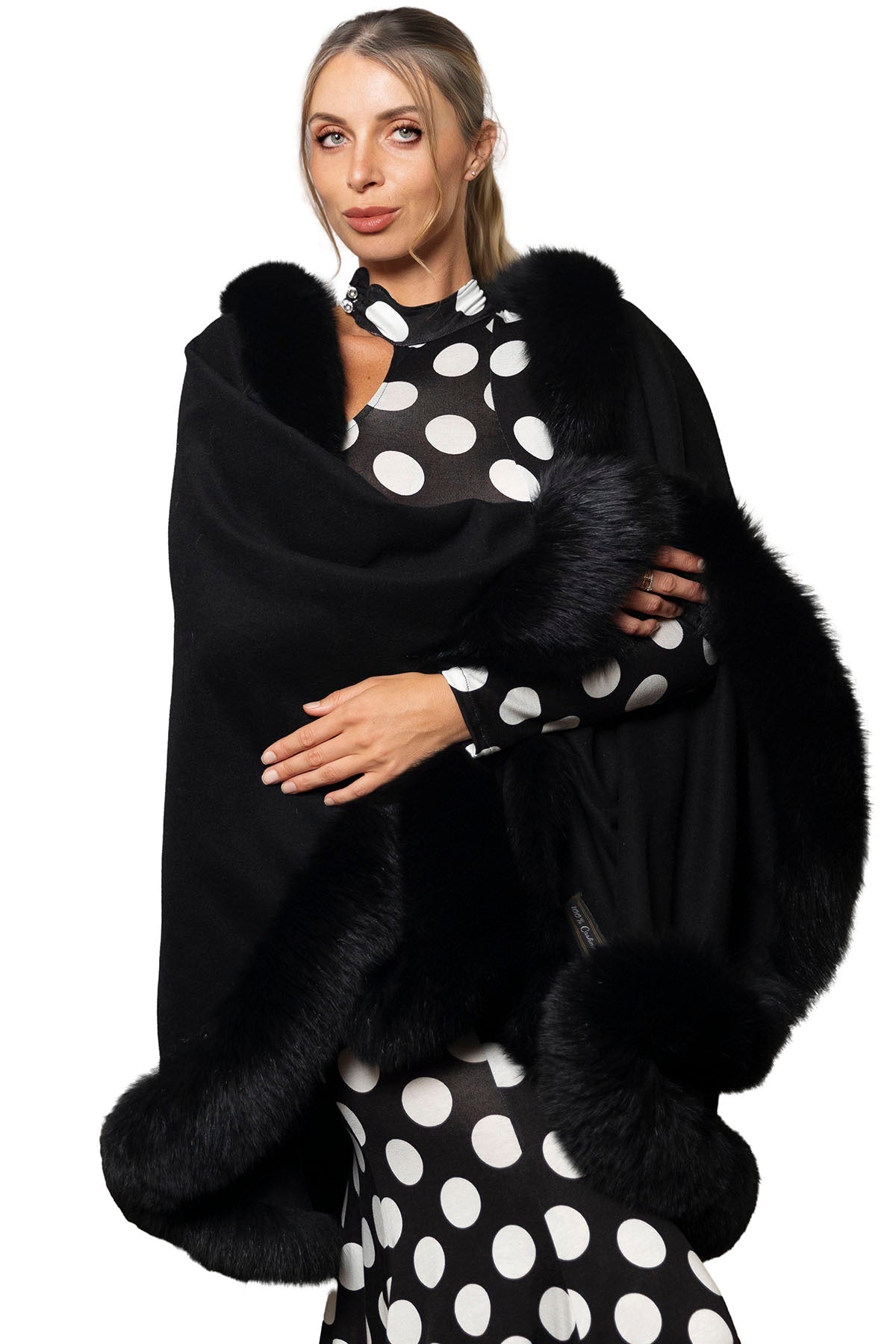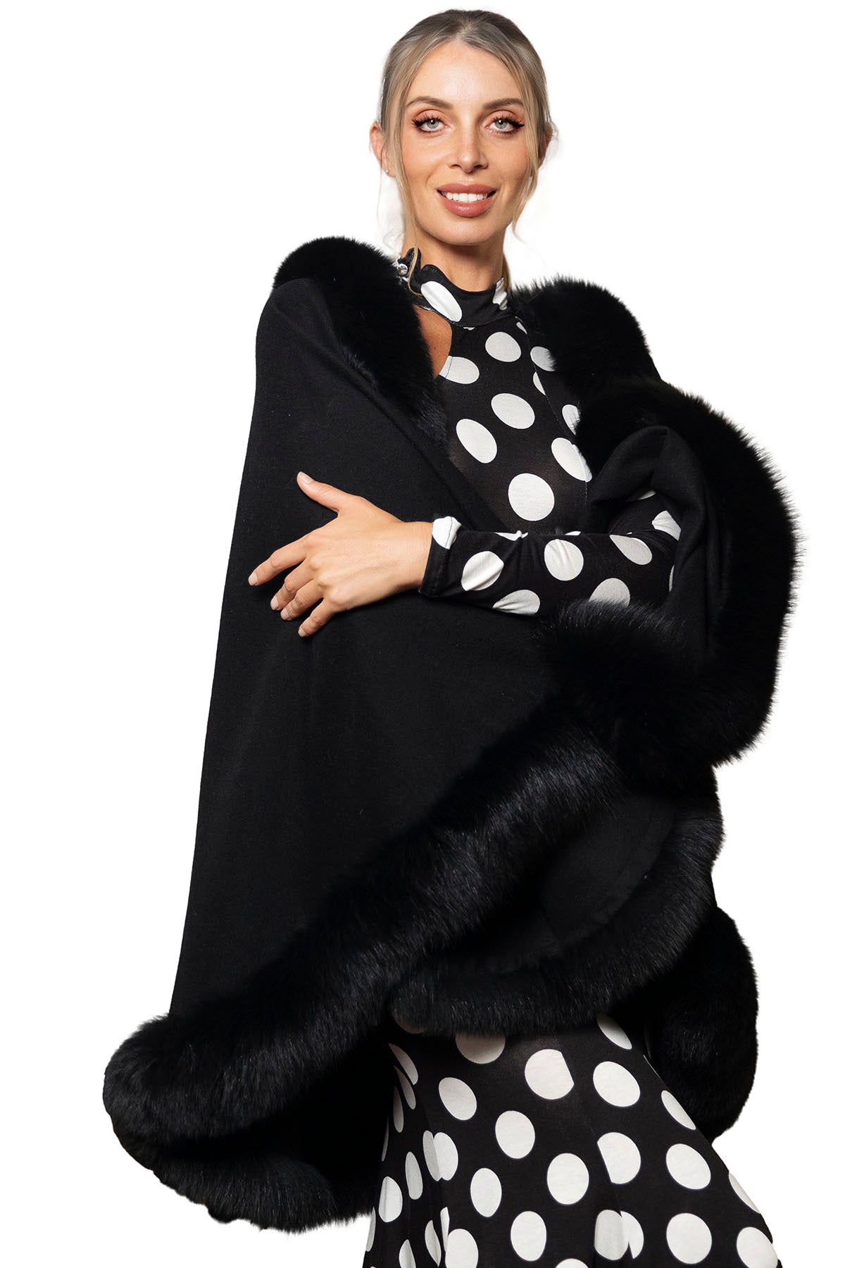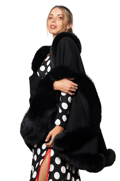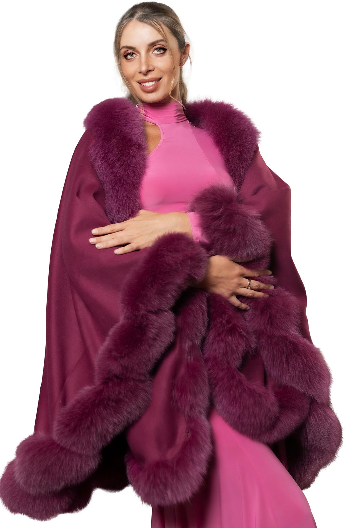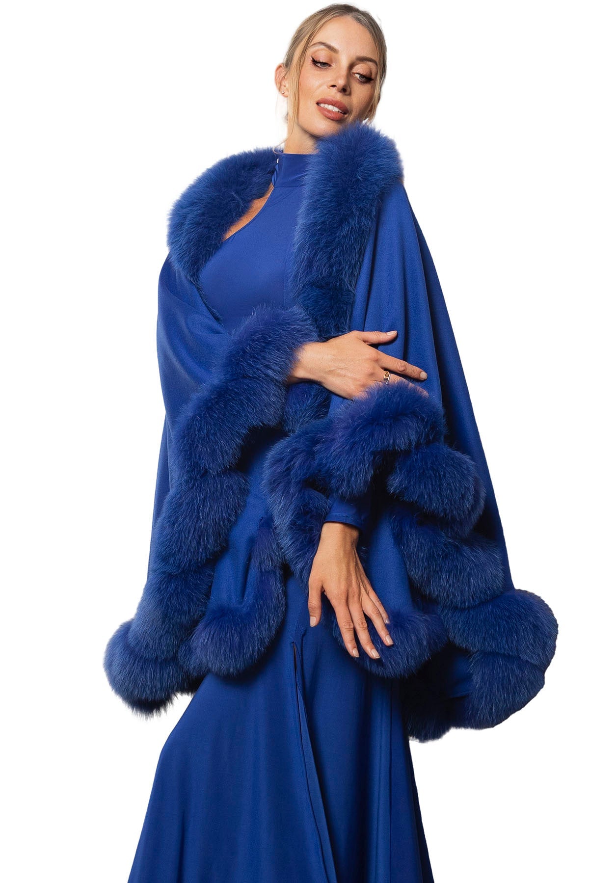 Indulge in luxury and warmth with our exquisite Alpaca Cape, featuring a stunning Fox Fur Trim. Keep cozy and stylish in any chilly ballroom. One size fits all, made with real fur. Elevate your wardrobe with this irresistible piece!