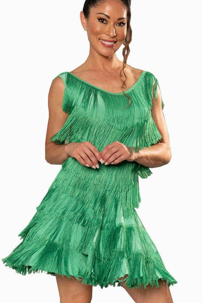 Indulge in luxury with our D2420 Full Fringe Dress. The top and full skirt is adorned with our exclusive 6 inch stretchable Fringe, creating a mesmerizing visual and a dress that moves effortlessly. Elevate your style with this unique and elegant piece.