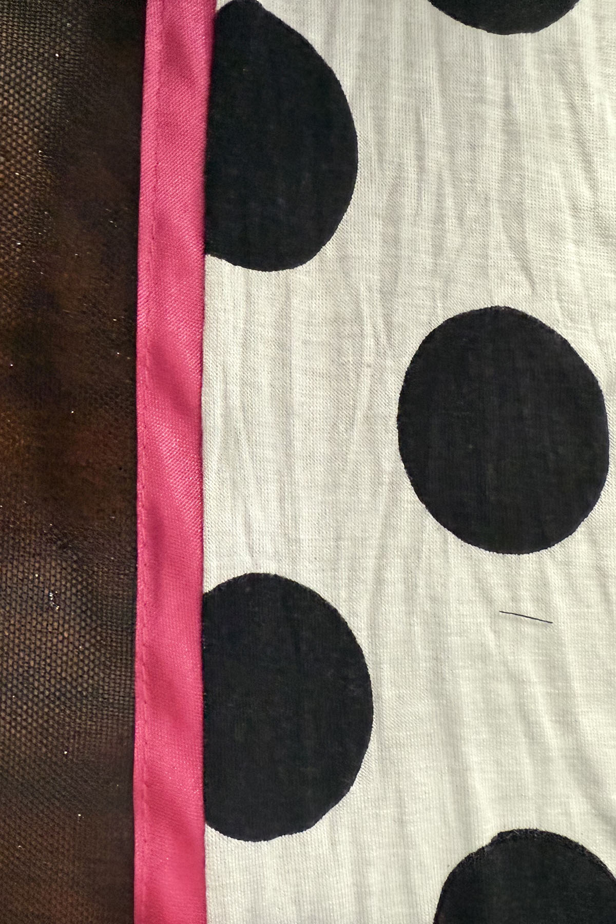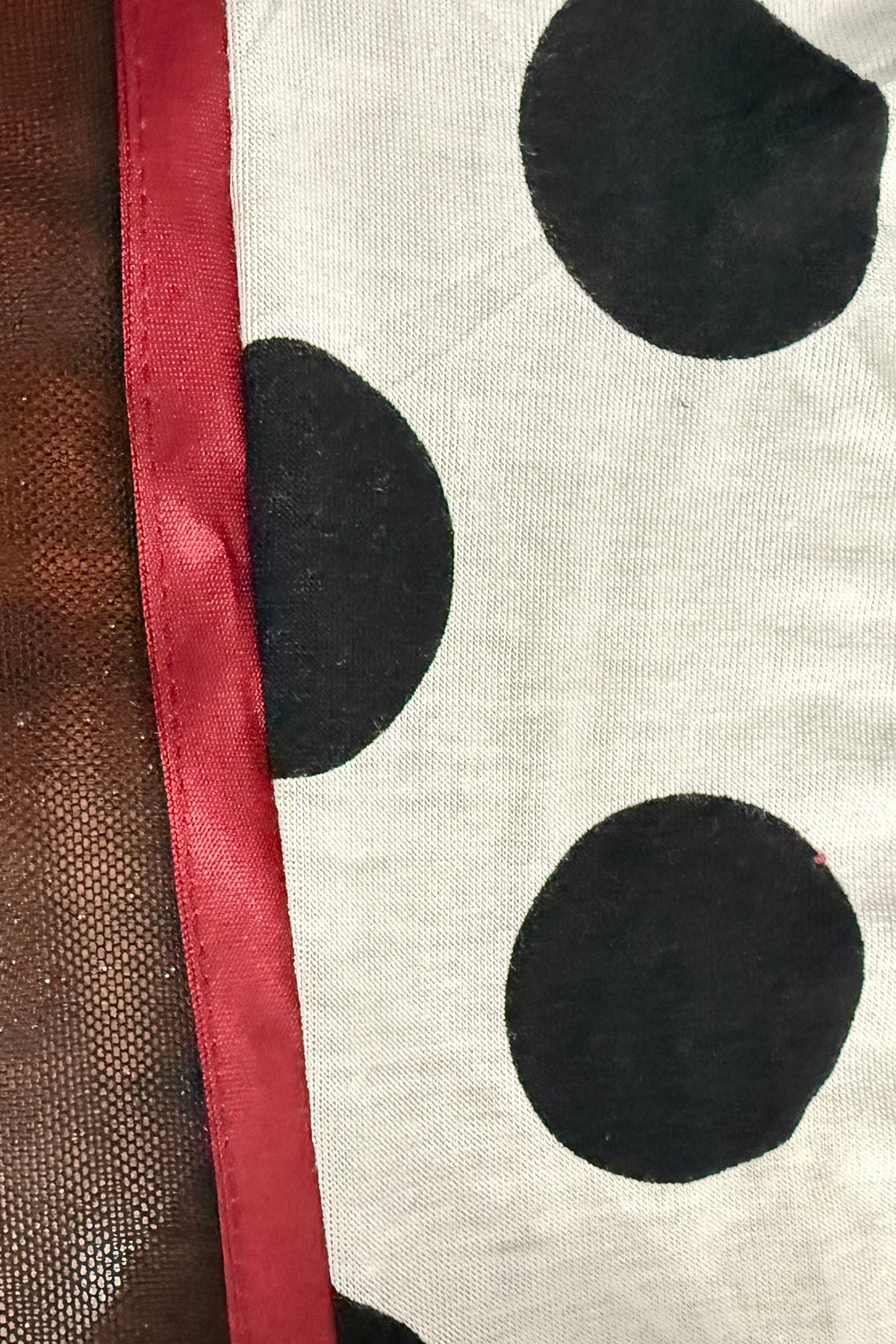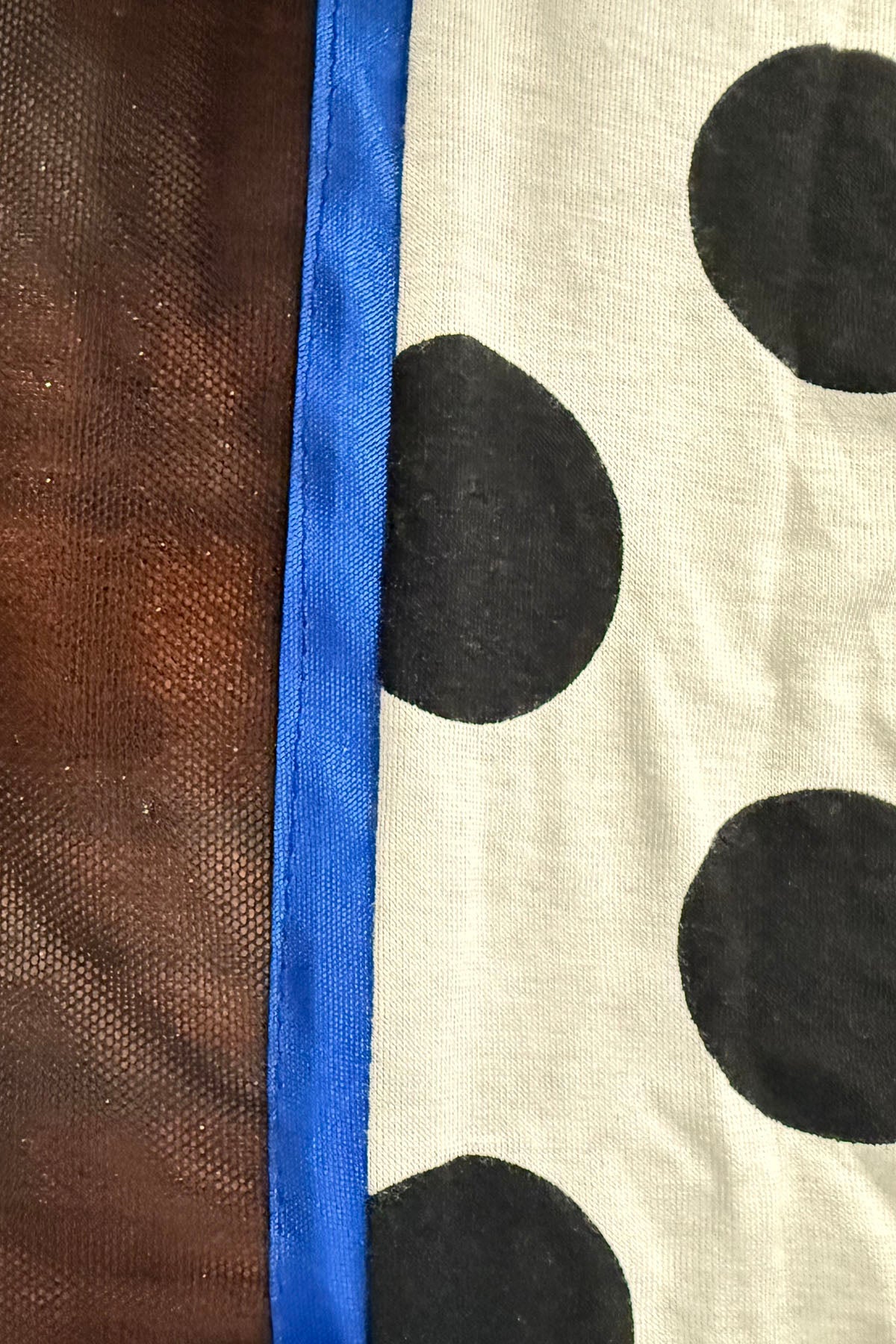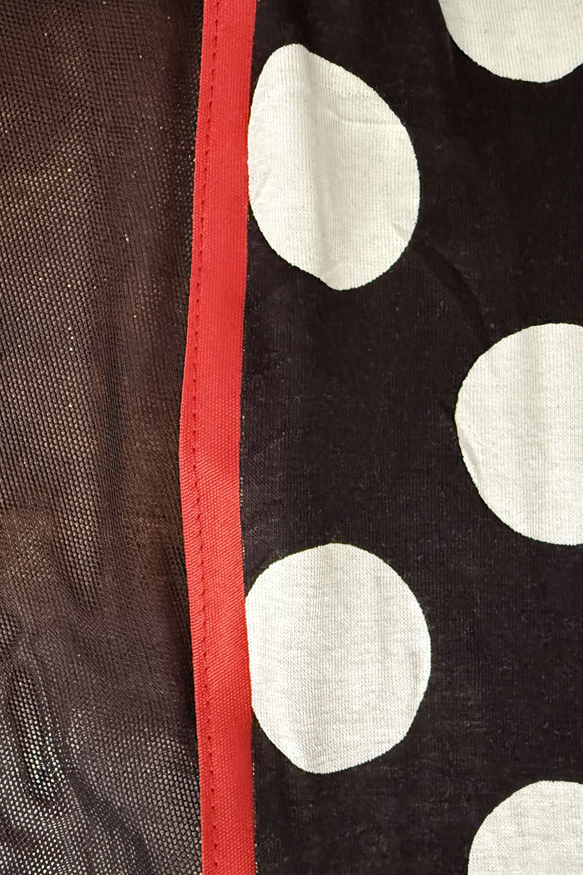 Power mesh circular insets framed with the colored satin band of your choice for striking detail and breathable comfort