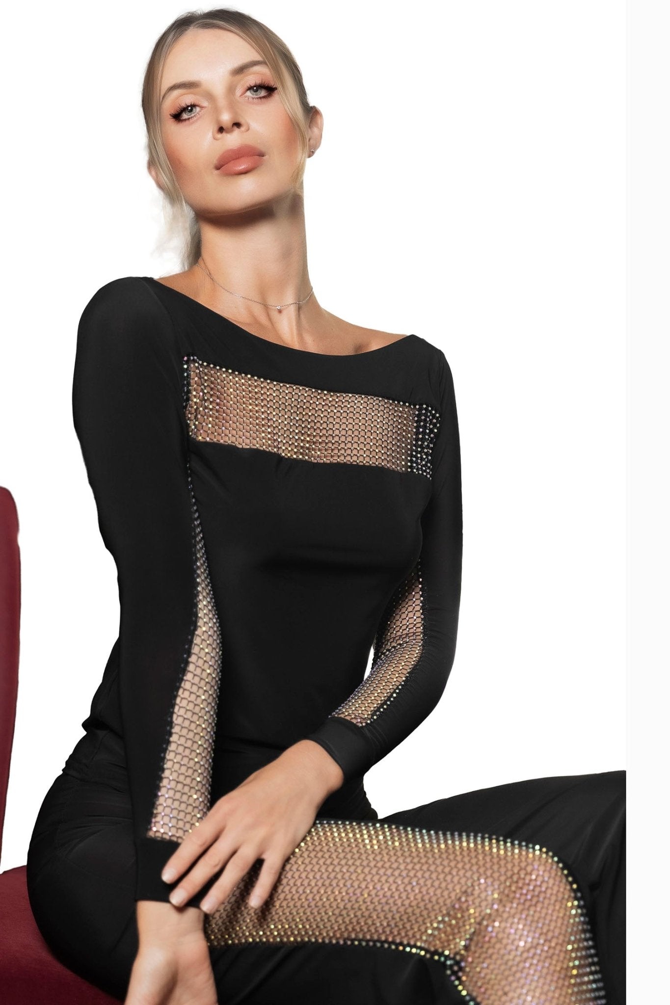 AB rhinestone mesh insets that dazzle with every motion