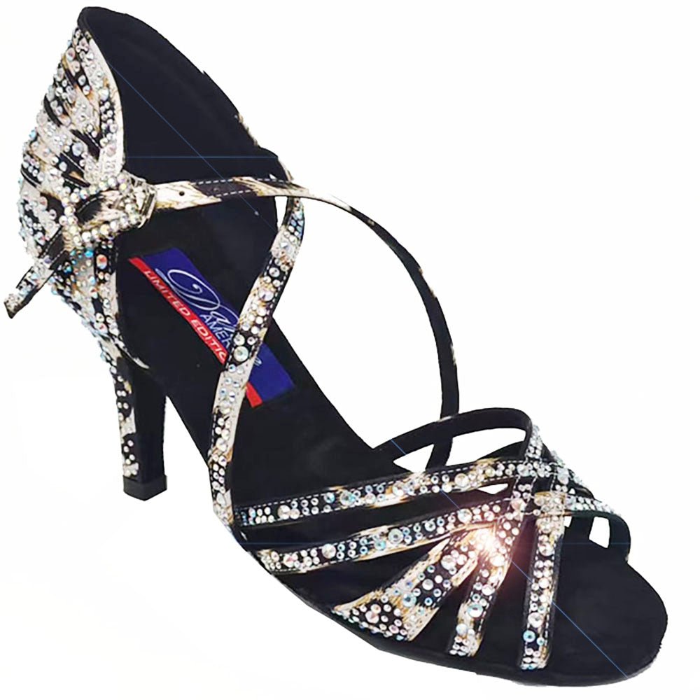 Indulge in luxury with our Vegas Satin heels. The leopard print and silver AB rhinestones add a touch of sophistication, while the 6mm memory foam and wider strap ensure comfort and flexibility. The 2.75" slim heel elongates your legs, making you the star of the dance floor. Limited edition, get yours now.